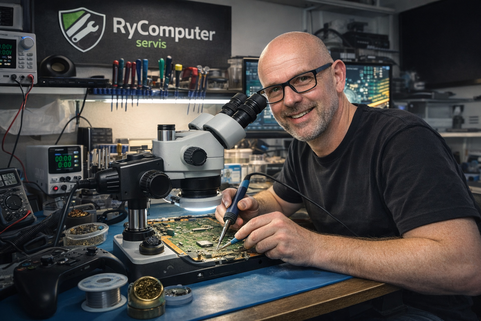 Veškeré technické opravy osobně provádím já jako hlavní technik RyComputer servisu. Opravám elektroniky se věnuji dlouhodobě a specializuji se především na opravy herních konzolí PlayStation, Xbox a Nintendo Switch, včetně oprav základních desek. Každé zařízení projde důkladnou diagnostikou a řeším jej od prvního zjištění závady až po finální opravu.